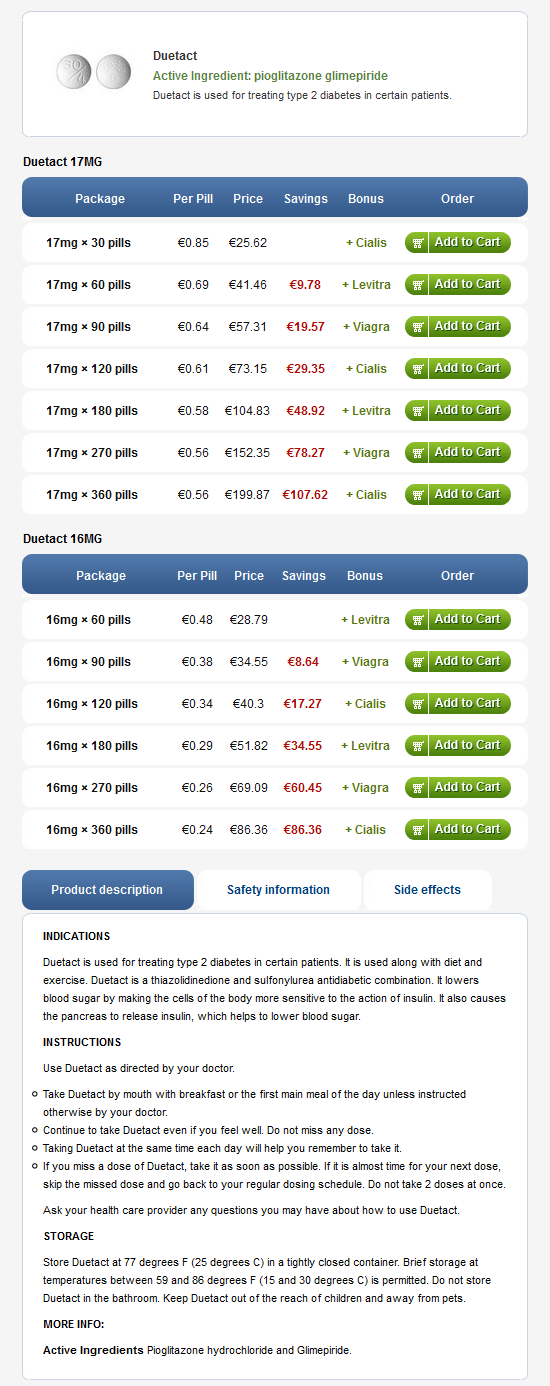 Kjøp Duetact (Pioglitazone Glimepiride)