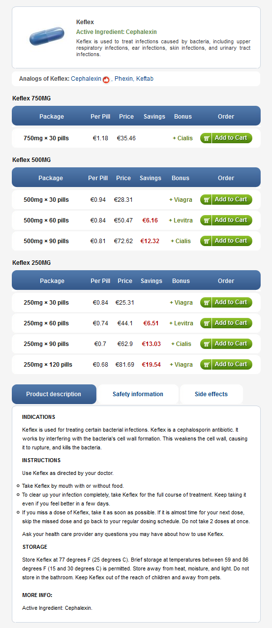 Keflex brukes til å behandle infeksjoner forårsaket av bakterier, inkludert øvre luftveisinfeksjoner, ørebetennelser, hudinfeksjoner, og urinveisinfeksjoner.