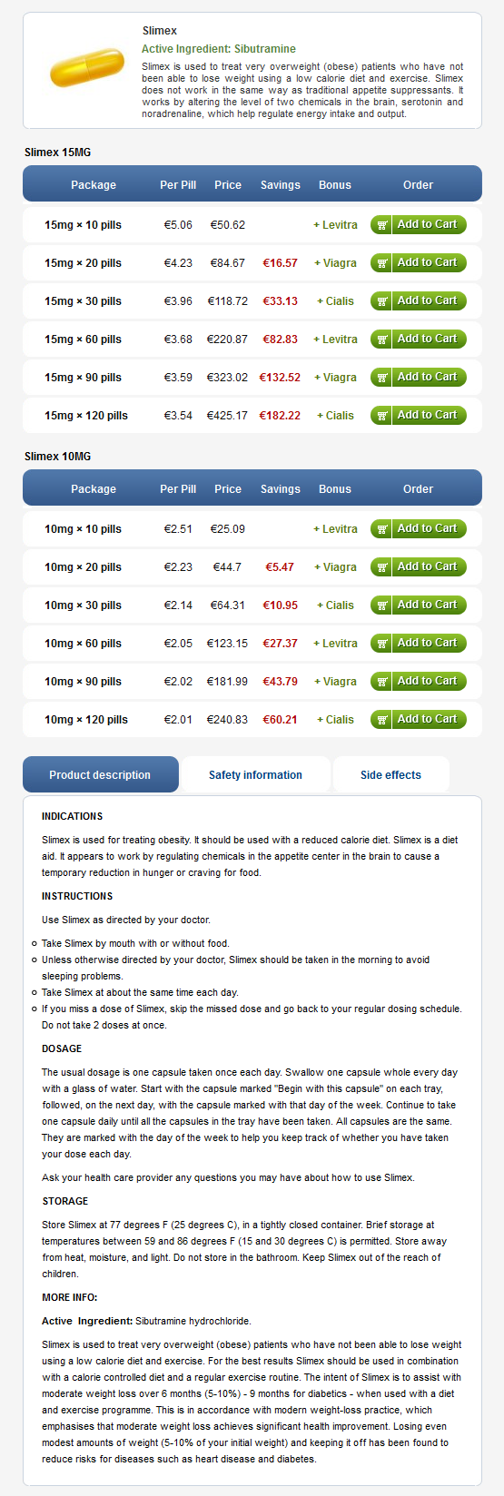 Kjøp Slimex (Sibutramine)